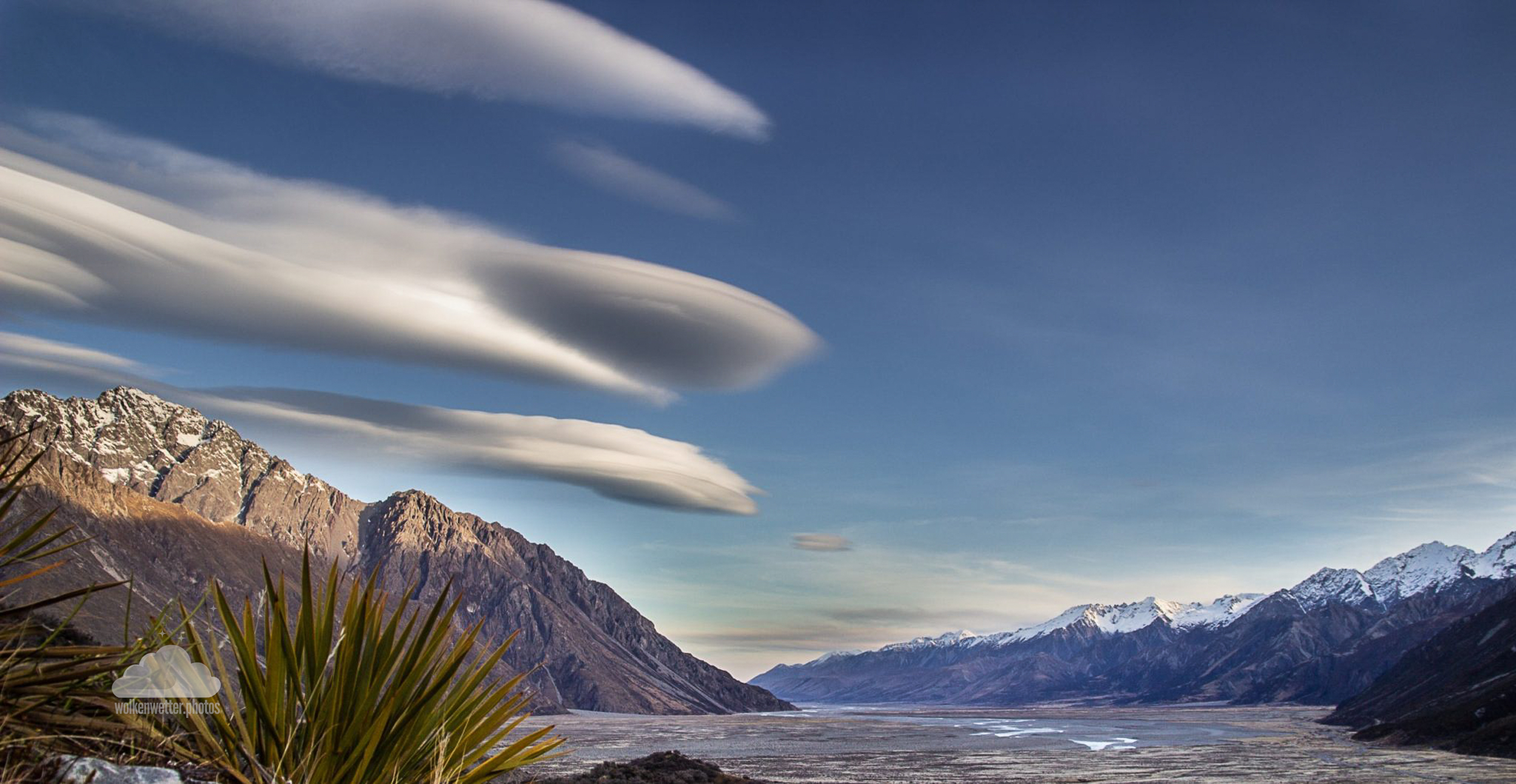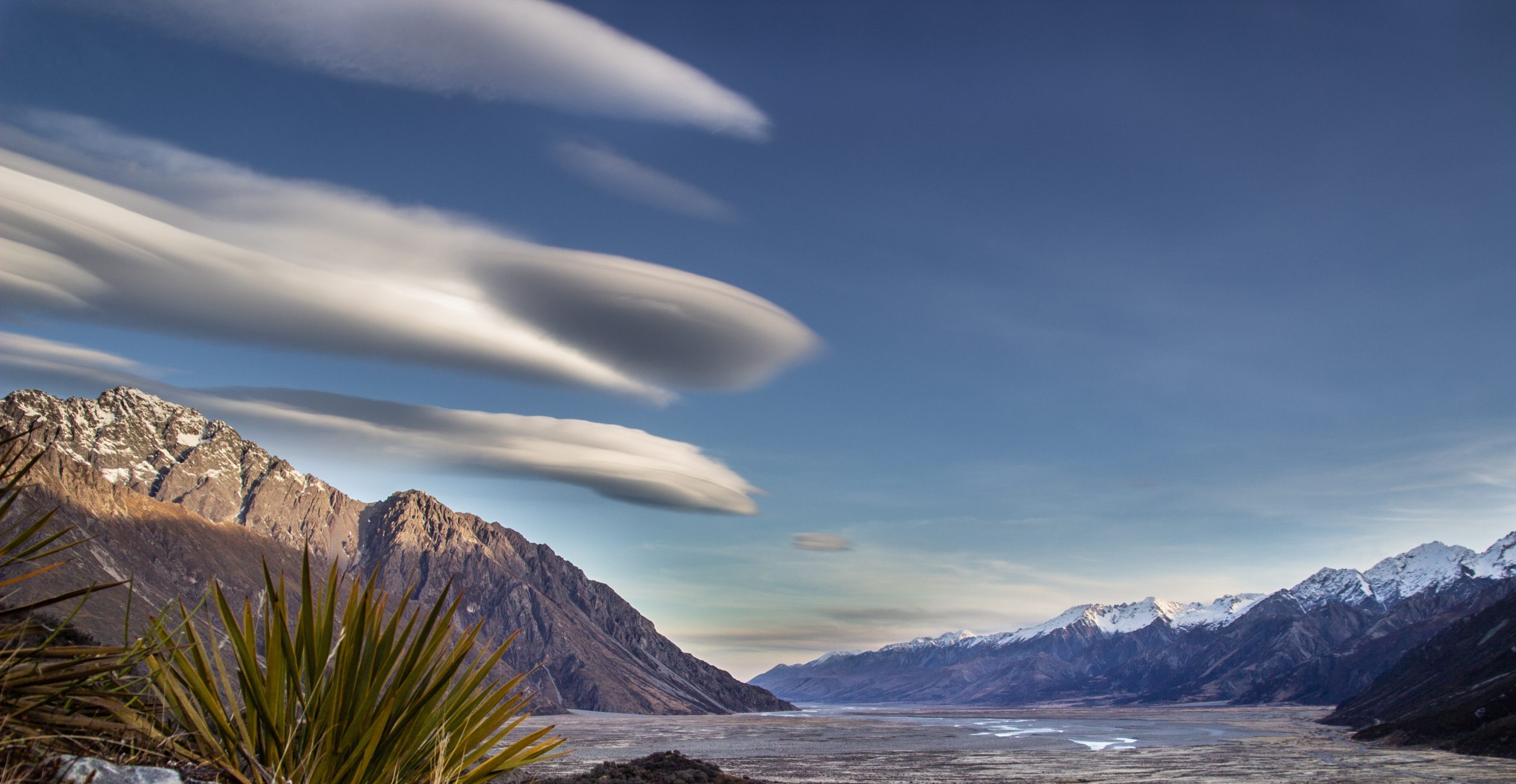 Altocumulus lenticularis über den neuseeländischen Alpen in der Nähe des Mt. Cook.